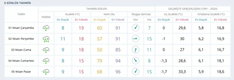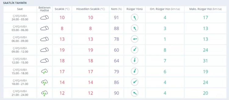 ????️ Sıcaklık: En düşük 8°C / En yüksek 19°C
