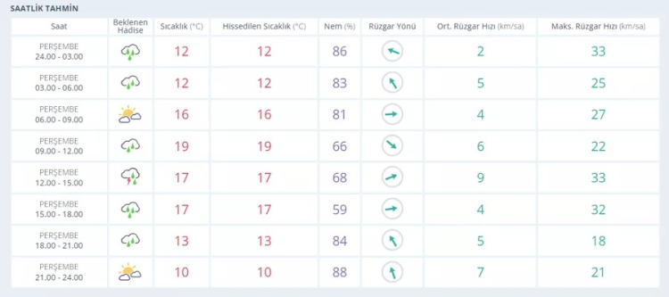 02 Nisan Perşembe: Gök Gürültülü Sağanak