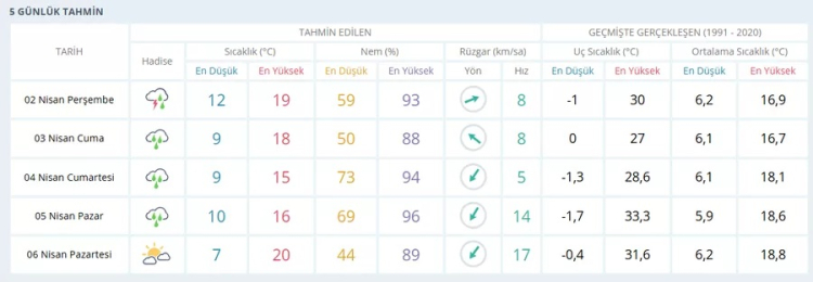 04 Nisan Cumartesi: Haftanın En Serin Günü