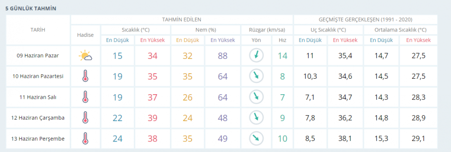 BURSA İÇİN 5 GÜNLÜK HAVA DURUMU TAHMİNİ