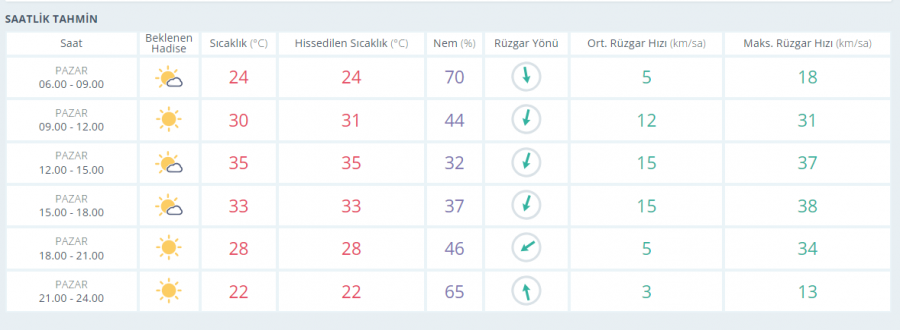 BURSA İÇİN SAATLİK HAVA DURUMU TAHMİNİ (9 HAZİRAN 2024)