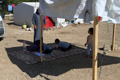Güneşin altında çadırlarda yaşayan mevsimlik tarım işçilerinin okumak isteyen çocuklarının ders çalıştığı ortamı görenler hayrete düşürüyor.