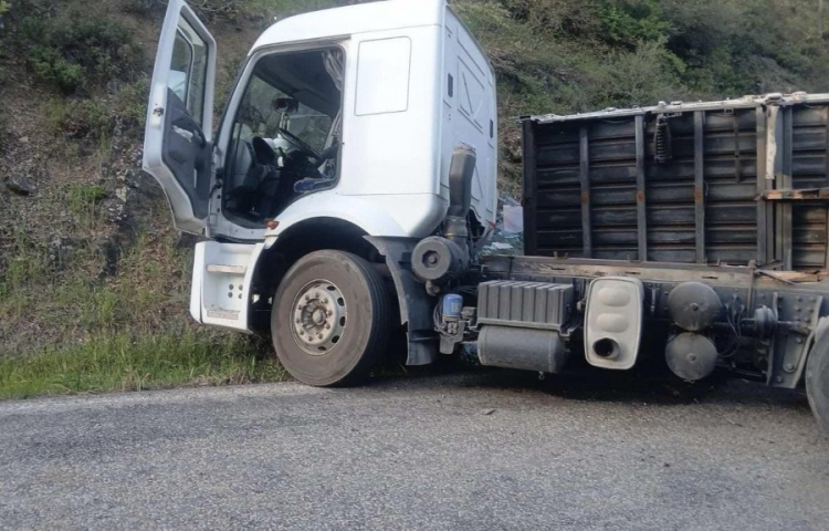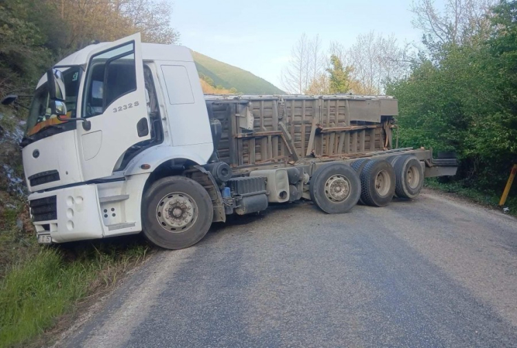 Alınan bilgilere göre, Yenişehir'den Orhangazi yönüne gitmekte olan cam yüklü kamyon, henüz bilinmeyen bir nedenle sürücünün direksiyon hakimiyetini kaybetmesiyle kontrolden çıktı ve bir süre sürüklendikten kasası yerinden koparak yol ortasına devrildi.