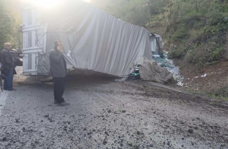Devrilen kamyon kasasının üzerindeki camlar yola saçılırken, kaza nedeniyle Orhangazi - Yenişehir yolu kamyon kaldırılıncaya kadar trafiğe kapandı.