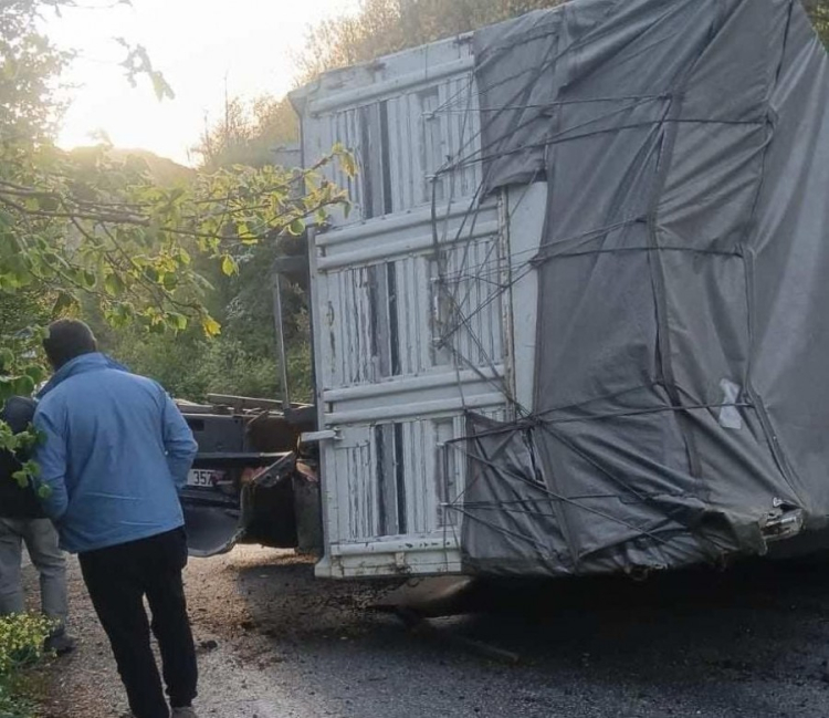 Kamyonun kaldırılması çalışmalar devam ediyor.