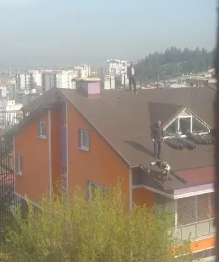 Bursa'da canını hiçe sayarak çatı tamiri yaptı!