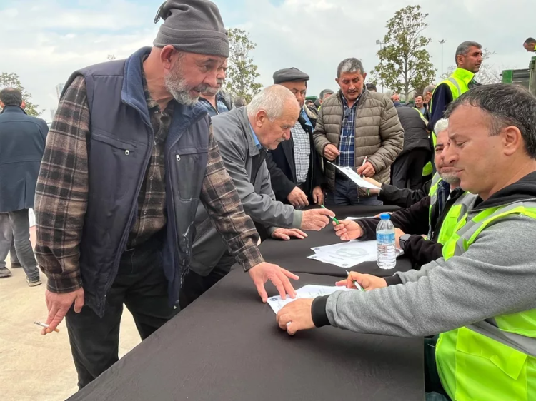 Hüdavendigar Kent Parkı'nda gerçekleştirilen dağıtım törenine çok sayıda üretici katılım sağladı.