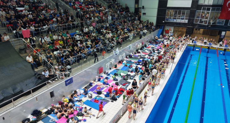 Bursa'da, 23 Nisan Ulusal Egemenlik ve Çocuk Bayramı şenlikleri kapsamındaOsmangazi ilçesinde bulunan Atıcılar Spor Kompleksi'nde bir araya gelen 17 kulüpten toplam 450 çocuk sporcu, 23 Nisan Ulusal Egemenlik ve Çocuk Bayramı'nı, 50 metrelik olimpik havuzda düzenlenen yarışmalara katılarak kutladı.