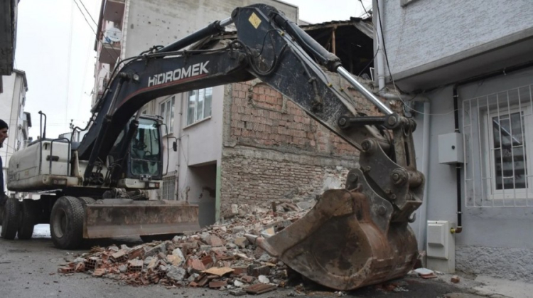 Bursa'nın Gemlik ilçesinde yıkılma tehlikesi bulunan ve güvenliği tehdit eden çok sayıda metruk bina fen işleri ekipleri tarafından yıkıldı.