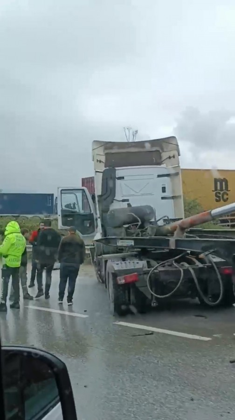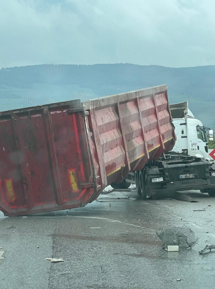 Bursa'nın Gemlik ilçesinde seyir halindeki tırın damperi açılarak üst geçide çarptı. Kaza sonrası trafik tek şeritten ilerlerken, tır çekici yardımıyla yoldan kaldırıldı.