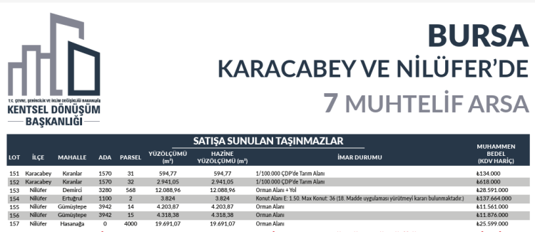 Öte yandan Çevre, Şehircilik ve İklim Değişikliği Bakanlığı Kentsel Dönüşüm Başkanlığı'nın söz konusu araziyi açık artırma ile satmak için ilan verdiği öğrenildi.