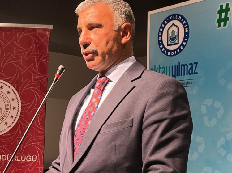 Bursa İl Milli Eğitim Müdür Yardımcısı Yunus Bulut, "Sevgili başkanım ekibimle beraber beni oluşturmuş olduğunuz alanlara ulaştık. Yıldırım için neler yapabiliriz konuştuk. O gün orada bunları konuşurken bugün hızlı bir şekilde startını verdiğiniz bu projeyi sahiplendiğinizi, sahip çıkacağınızı gördüğümüz ve çocuklarımıza, gençlerimize sahip çıktığı için sıfır atık konusuna, çevre konusunda uyarılarımıza destek olduğunuz için bizler sizlere teşekkür ediyoruz. Bildiğiniz gibi çocuklar, geleceğimiz, bizim her şeyimiz. Sağlıklı yaşam alanı oluşturmak da belediyelerimizin görevi. Bu anlamda belediye başkanımızdan istirhamımız var. Ben tüm öğrenciler adına bir talepte bulunmak istiyorum. Su arıtma cihazının bulunmadığı okul kalmasın, elinde su matarası bulunmayan öğrenci kalmasın ve okullarda atık yüzünden hiçbir koku olmasın diyorum" açıklamalarıyla Başkan Yılmaz'a desteklerinden dolayı teşekkür ederek projenin hayırlı olmasını diledi.