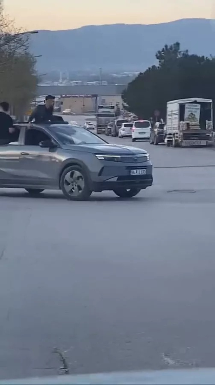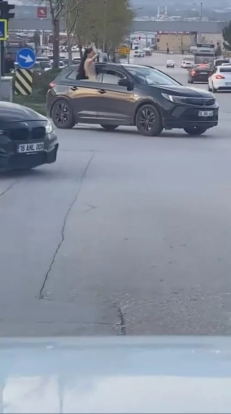 Olay, 5 Nisan Pazar günü Yıldırım ilçesi Yiğitler Mahallesi'nde meydana geldi. Düğün salonuna gitmek üzere yola çıkan konvoydaki araç sürücüleri, trafikte tehlikeli şekilde ilerledi. Kavşaktan dönüş yapan sürücüler, araçları ile ani manevra yaparken; yolcular da otomobillerin camlarına ve sunrooflarına çıktı.