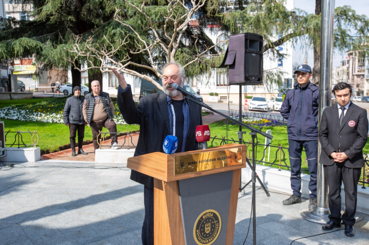 1961’den bu yana her yıl 27 Mart tarihinde kutlanan ‘Dünya Tiyatro Günü’nde Heykel Atatürk Caddesi’nde bir araya gelen tiyatro sanatçıları, günün anısına Atatürk Anıtı’na çelenk sundu. Bursa Büyükşehir Belediyesi’nin destekleri ile düzenlenen törende Dünya Tiyatro Günü dolayısıyla hazırlanan uluslararası ve ulusal tiyatro bildirileri de kamuoyu ile paylaşıldı. Uluslararası bildiri, Bursa Devlet Tiyatrosu sanatçısı Nejat Orbay Sehlikoğlu tarafından okunurken, ulusal bildiri ise Bursa Büyükşehir Belediyesi Şehir Tiyatrosu sanatçısı Hülya Köseoğlu tarafından katılımcılarla paylaşıldı.