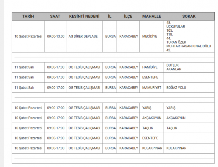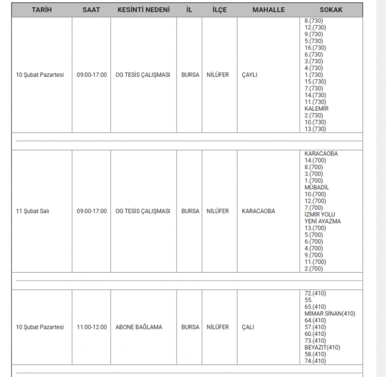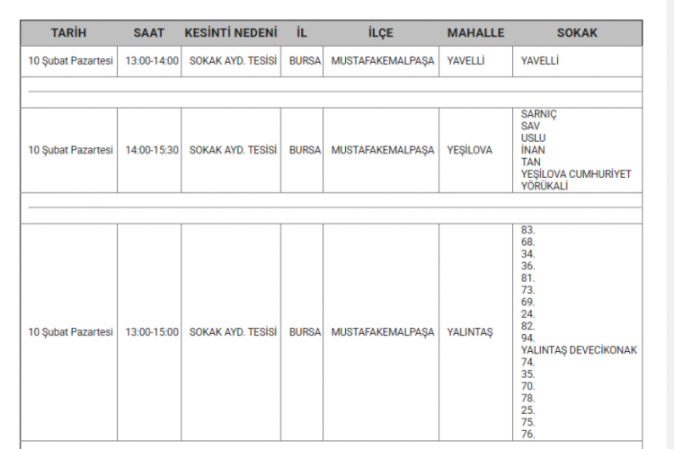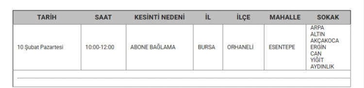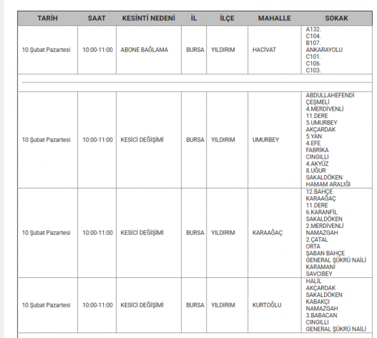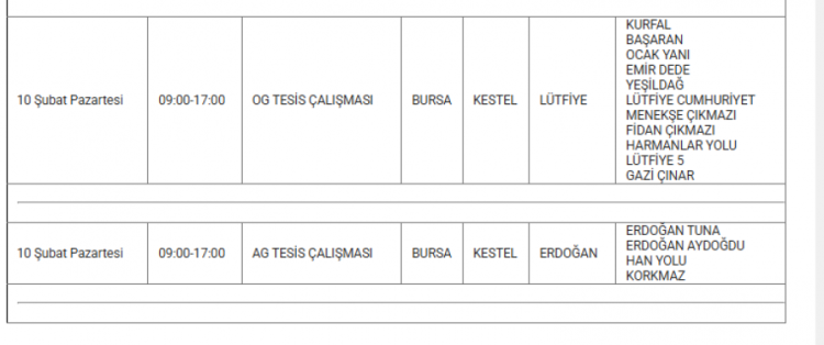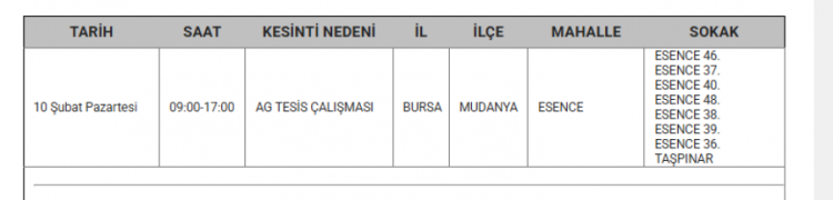 Bursa'da elektrikler ne zaman kesilecek? Bursa'da elektrik kesintisi var mı? Ne zaman? Bursa'da hangi mahallelerde kesinti olacak? soruları vatandaşlar tarafından yanıt arıyor... Uludağ Elektrik Dağıtım A.Ş (UEDAŞ) yapılacak planlı elektrik kesintisi programını duyurdu. Yapılan duyuruya göre; Büyükorhan, İnegöl, Karacabey, Kestel, Mudanya, Mustafakemalpaşa, Nilüfer, Orhaneli, Orhangazi, Osmangazi, Yıldırım ilçesinde elektrik kesintileri yapılacak. İşte 10 Şubat elektrik kesinti haritası...