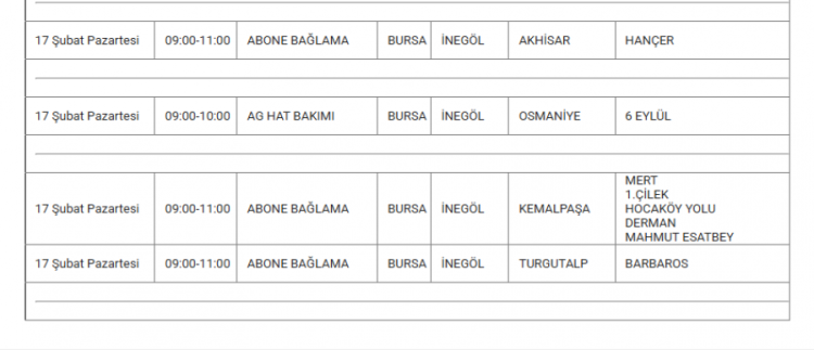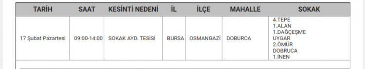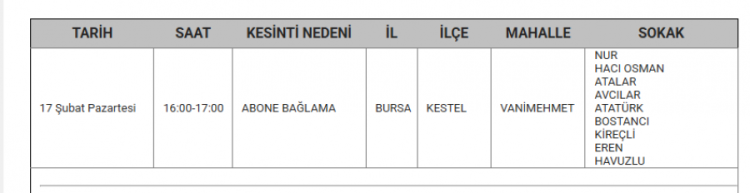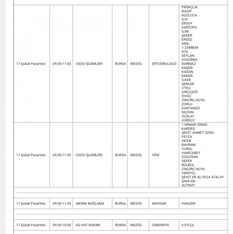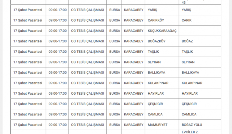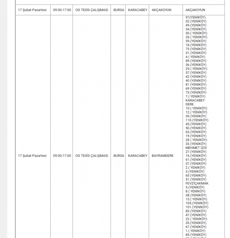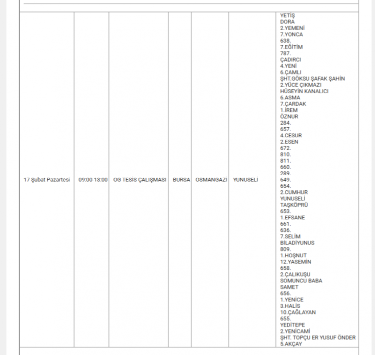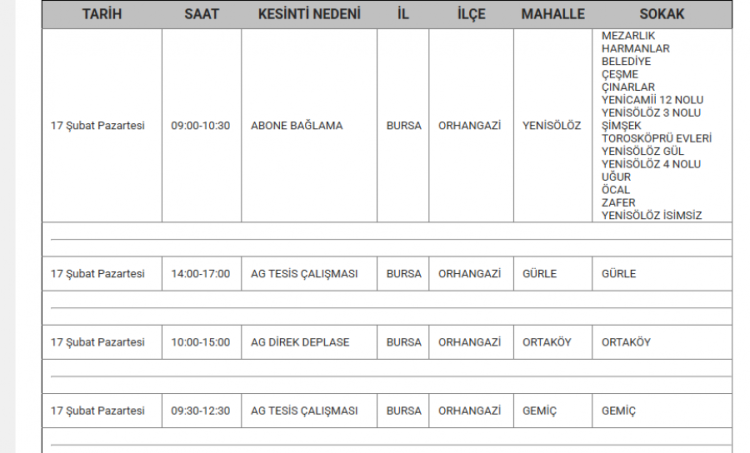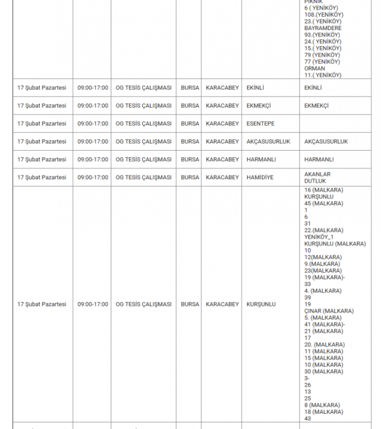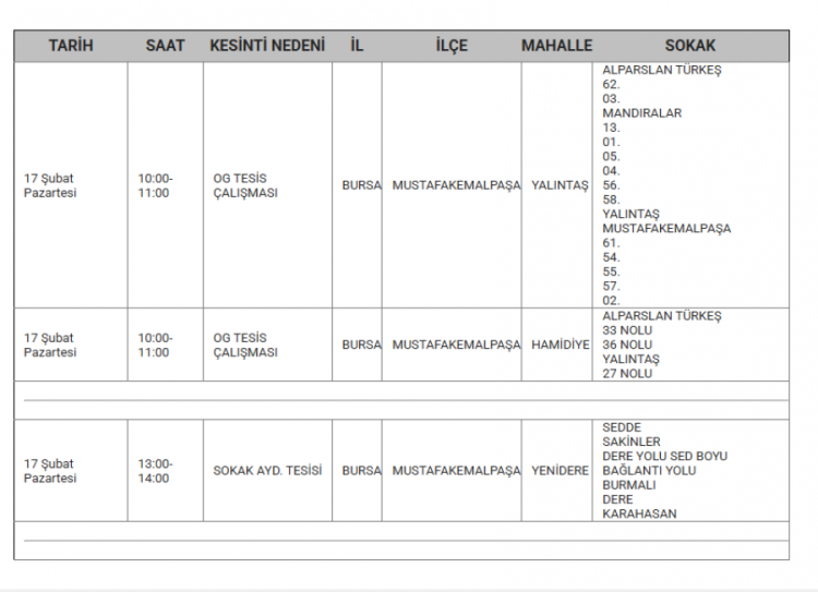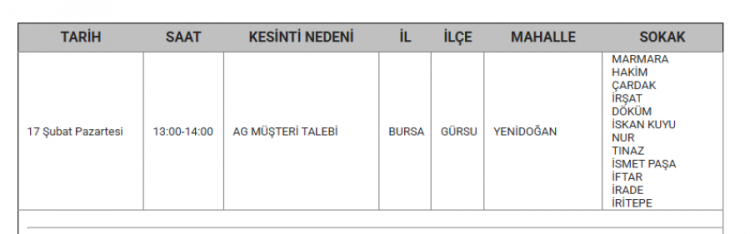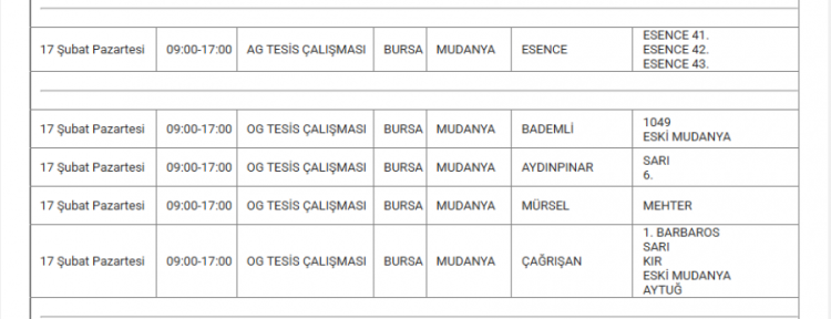 Bursa'da elektrikler ne zaman kesilecek? Bursa'da elektrik kesintisi var mı? Ne zaman? Bursa'da hangi mahallelerde kesinti olacak? soruları vatandaşlar tarafından yanıt arıyor... Uludağ Elektrik Dağıtım A.Ş (UEDAŞ) yapılacak planlı elektrik kesintisi programını duyurdu. Yapılan duyuruya göre; Gürsu, İnegöl, Karacabey, Kestel, Mudanya, Mustafakemalpaşa, Nilüfer, Orhangazi, Osmangazi ilçesinde elektrik kesintileri yapılacak. İşte 17 Şubat elektrik kesinti haritası...