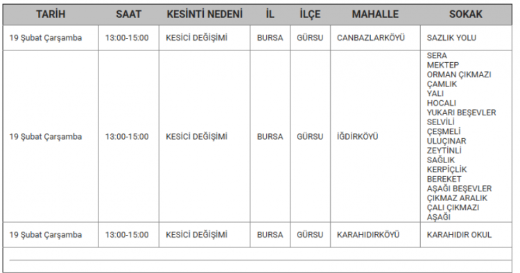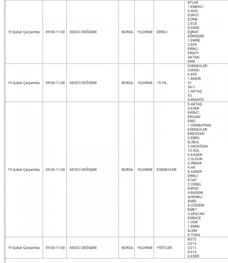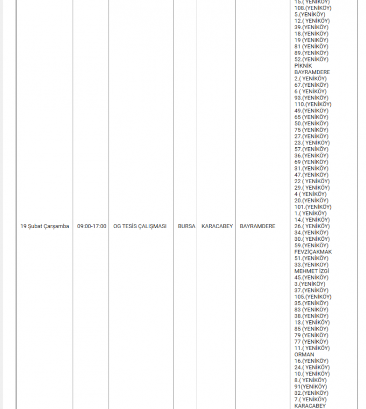 Bursa'da elektrikler ne zaman kesilecek? Bursa'da elektrik kesintisi var mı? Ne zaman? Bursa'da hangi mahallelerde kesinti olacak? soruları vatandaşlar tarafından yanıt arıyor... Uludağ Elektrik Dağıtım A.Ş (UEDAŞ) yapılacak planlı elektrik kesintisi programını duyurdu. Yapılan duyuruya göre; Gürsu, Karacabey, Mudanya, Osmangazi, Yıldırım ilçesinde elektrik kesintileri yapılacak. İşte 19 Şubat elektrik kesinti haritası...