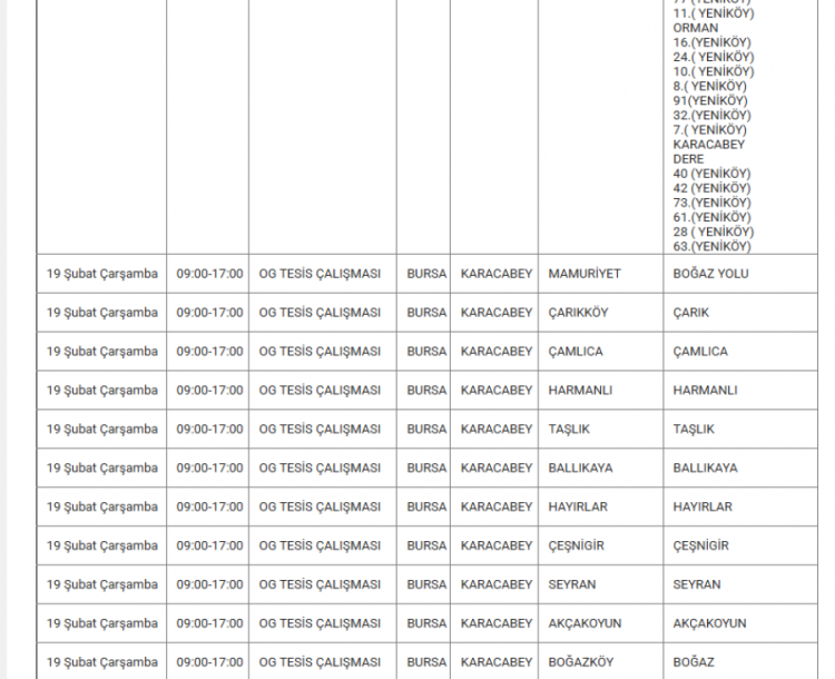 UEDAŞ, Bursa'da 19 Şubat 2025 Çarşamba günü hangi mahallelerde planlı elektrik kesintisi yapılacağı duyurdu. Yapılan duyuruya göre Gürsu, Karacabey, Mudanya, Osmangazi, Yıldırım ilçesinde elektrik kesintileri yapılacak. İşte 19 Şubat elektrik kesinti haritası...