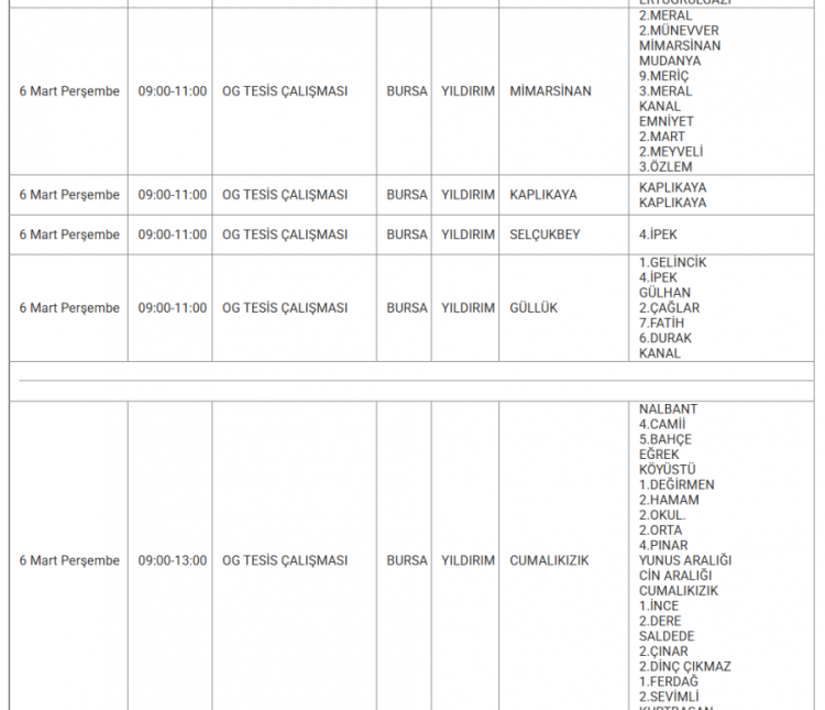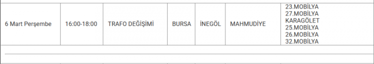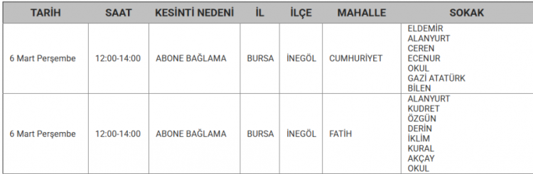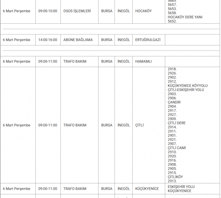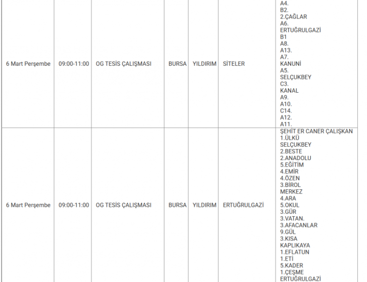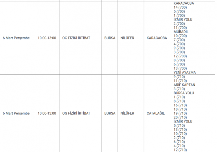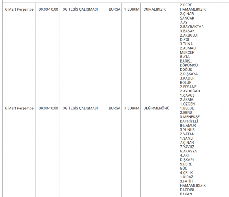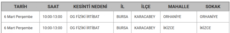 Bursa'da elektrikler ne zaman kesilecek? Bursa'da elektrik kesintisi var mı? Ne zaman? Bursa'da hangi mahallelerde kesinti olacak? soruları vatandaşlar tarafından yanıt arıyor... Uludağ Elektrik Dağıtım A.Ş (UEDAŞ) yapılacak planlı elektrik kesintisi programını duyurdu. Yapılan duyuruya göre; İnegöl, Karacabey, Mustafakemalpaşa, Nilüfer, Orhaneli, Osmangazi, Orhangazi ve Yıldırım ilçesinde elektrik kesintileri yapılacak. İşte 6 Mart elektrik kesinti haritası...