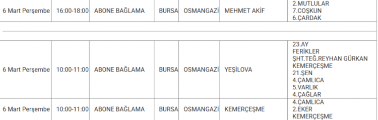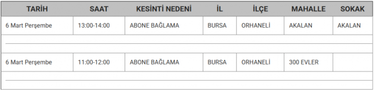 UEDAŞ, Bursa'da 6 Mart 2025 Perşembe günü hangi mahallelerde planlı elektrik kesintisi yapılacağı duyurdu. Yapılan duyuruya göre, İnegöl, Karacabey, Mustafakemalpaşa, Nilüfer, Orhaneli, Osmangazi, Orhangazi ve Yıldırım ilçesinde elektrik kesintileri yapılacak. İşte 6 Mart elektrik kesinti haritası...