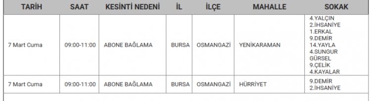Bursa'da elektrikler ne zaman kesilecek? Bursa'da elektrik kesintisi var mı? Ne zaman? Bursa'da hangi mahallelerde kesinti olacak? soruları vatandaşlar tarafından yanıt arıyor... Uludağ Elektrik Dağıtım A.Ş (UEDAŞ) yapılacak planlı elektrik kesintisi programını duyurdu. Yapılan duyuruya göre; İnegöl, İznik, Kestel, Mustafakemalpaşa, Nilüfer, Orhangazi, Osmangazi, Yenişehir, Yıldırım ilçesinde elektrik kesintileri yapılacak. İşte 7 Mart elektrik kesinti haritası...