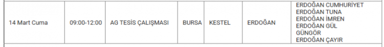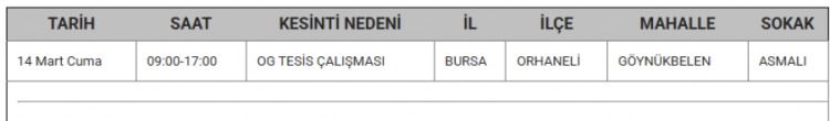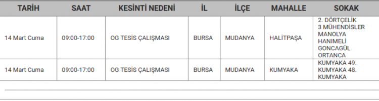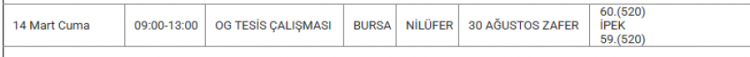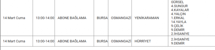 Bursa'da elektrikler ne zaman kesilecek? Bursa'da elektrik kesintisi var mı? Ne zaman? Bursa'da hangi mahallelerde kesinti olacak? soruları vatandaşlar tarafından yanıt arıyor... Uludağ Elektrik Dağıtım A.Ş (UEDAŞ) yapılacak planlı elektrik kesintisi programını duyurdu. Yapılan duyuruya göre; Gemlik, İnegöl, İznik, Kestel, Mudanya, Mustafakemalpaşa, Nilüfer, Osmangazi ilçesinde elektrik kesintileri yapılacak. İşte 14 Mart elektrik kesinti haritası...