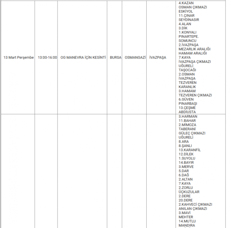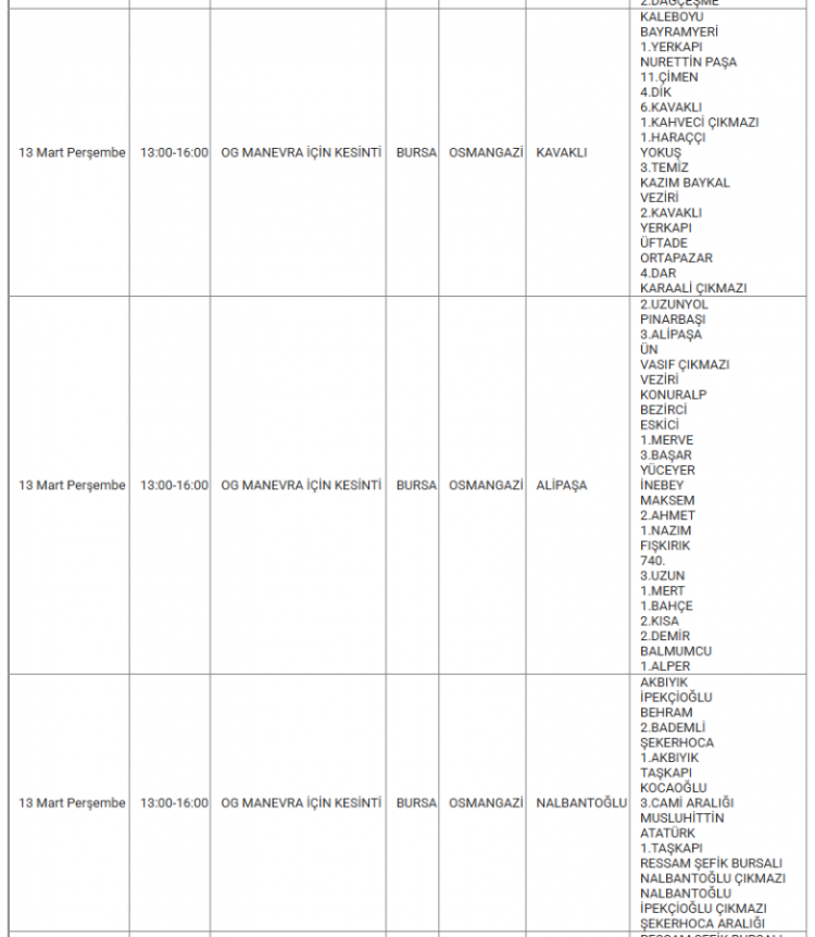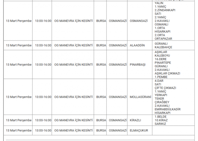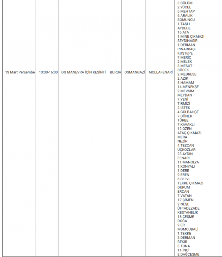 Bursa'da elektrikler ne zaman kesilecek? Bursa'da elektrik kesintisi var mı? Ne zaman? Bursa'da hangi mahallelerde kesinti olacak? soruları vatandaşlar tarafından yanıt arıyor... Uludağ Elektrik Dağıtım A.Ş (UEDAŞ) yapılacak planlı elektrik kesintisi programını duyurdu. Yapılan duyuruya göre; Gemlik, İnegöl, İznik, Kestel, Mudanya, Mustafakemalpaşa, Nilüfer, Osmangazi ilçesinde elektrik kesintileri yapılacak. İşte 13 Mart elektrik kesinti haritası...