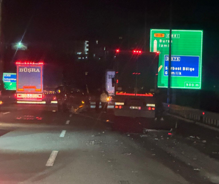 Kaza, bu akşam saat 20.00 sıralarında Gebze - Orhangazi -İzmir otoyolu Gemlik serbest bölge girişi yakınlarında meydana geldi.