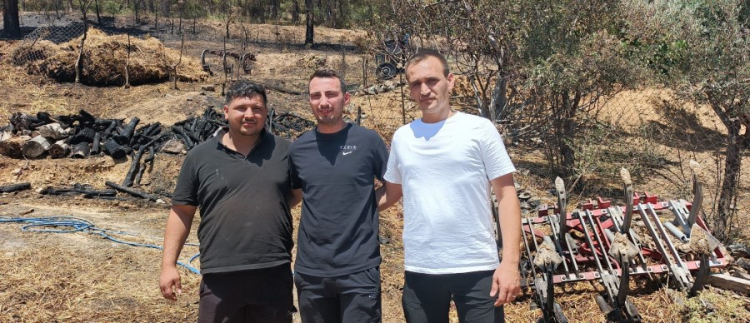 Evine 10 metre kala bahçesindeki saman ve 200 balya yulafın yandığını da belirten Ertekin, "Alevler ahıra sıçramış, arkadaşlar sağ olsun ahırdaki koyunları çıkarmışlar. Traktör ve römorklar vardı çok şükür onlara bir şey olmamış. Çok şükür bununla atlattık herkese geçmiş olsun" diye konuştu.