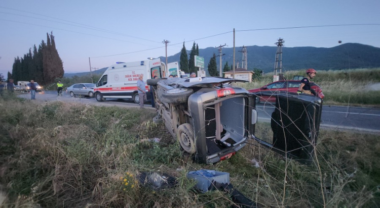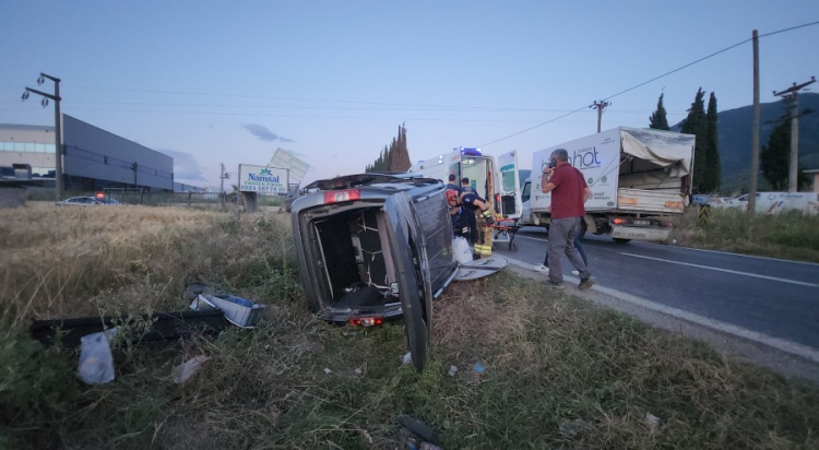 Bursa'da, Orhangazi - İznik Güney yolu üzerinde meydana gelen trafik kazasında otomobil ile hafif ticari araç çarpıştı. Kazada, hafif ticari araç çarpmanın etkisiyle devrilirken her iki araçta bulunan toplamda 3 kişi yaralandı.