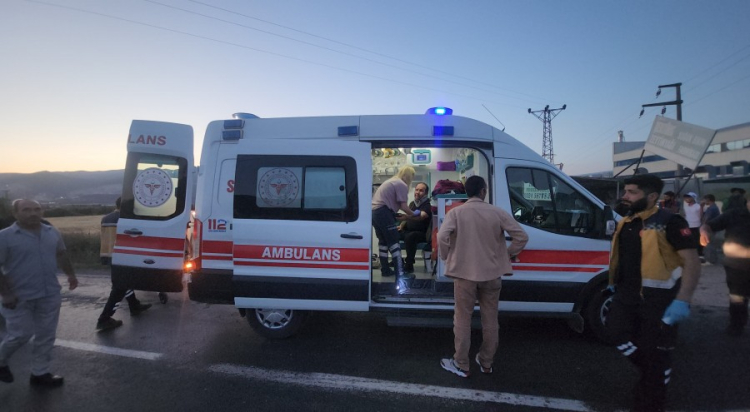 Çarpışma sonucu kontrolden çıkan hafif ticari araç yol kenarına devrilirken, olay yerine ihbar üzerine çok sayıda sağlık, jandarma ve itfaiye ekibi sevk edildi.