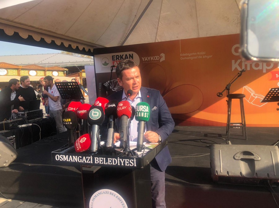 Osmangazi Belediye Başkanı Erkan Aydın, fuar açılışında yaptığı konuşmada, "İnsanlık yalanı ve adaletsizliği kılıçla değil kitapla yenecektir" sözlerini hatırlatarak, cehaleti yenmenin yolunun eğitim ve kitaptan geçtiğini vurguladı.