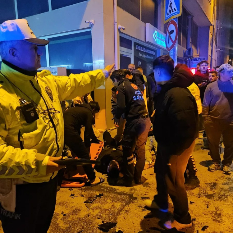 Çarpışmanın şiddetiyle motosiklet üzerindeki iki kişi yere savruldu. İhbar üzerine olay yerine sağlık ve polis ekipleri sevk edildi.