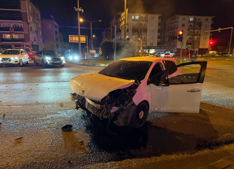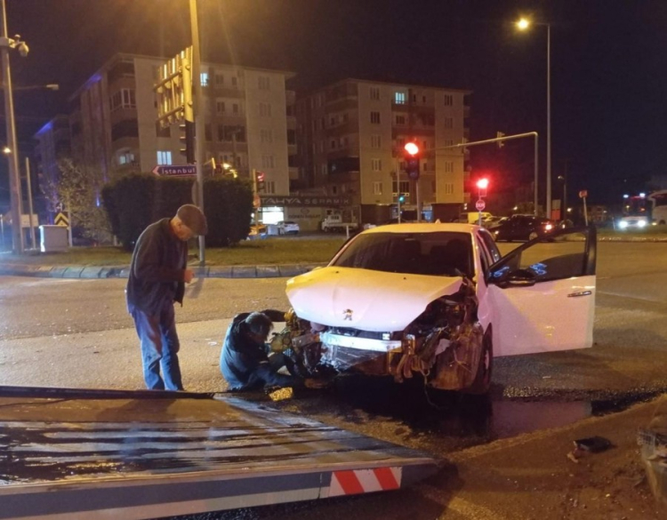 Bursa'nın Orhangazi ilçesinde gece saatlerinde meydana gelen trafik kazasında, ışıklı kavşakta iki otomobil henüz bilinmeyen bir nedenle çarpıştı. Kazada aynı otomobil içinde bulunan iki kişi yaralanırken, araçlardan birinin lastiği yerinden koptu.