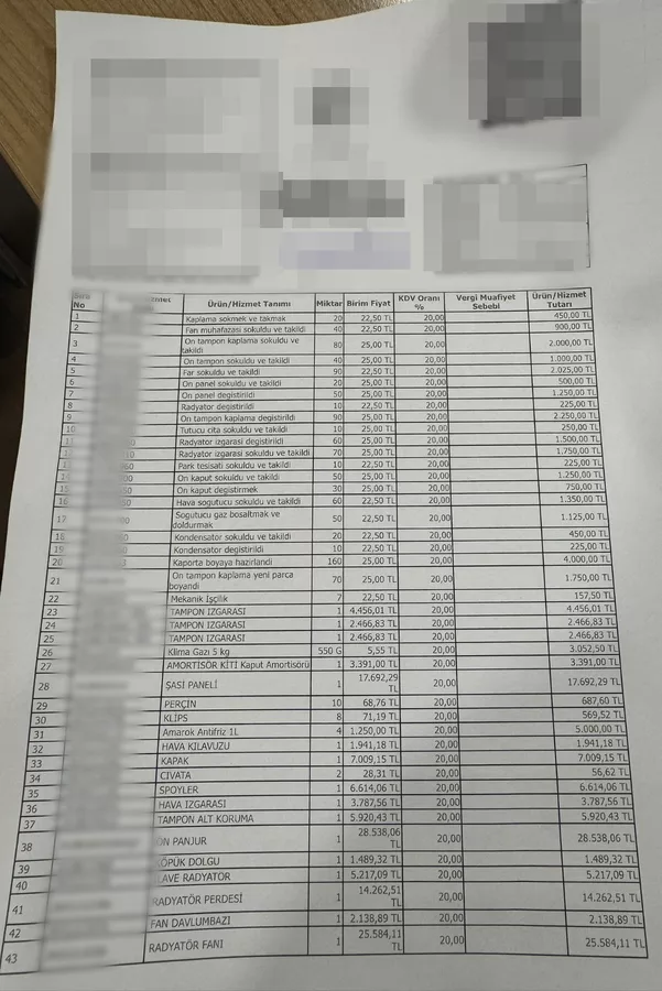 56 LİRALIK CIVATA BEDELİNİ DE İSTEDİLER