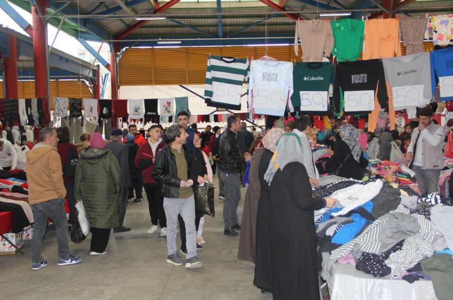 Osmangazi Yunuseli Giyim Pazarı'nda tüm ürünler mağaza fiyatlarının yarısına satılıyor.
