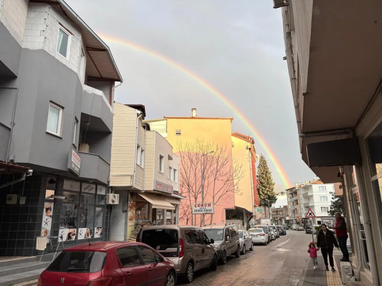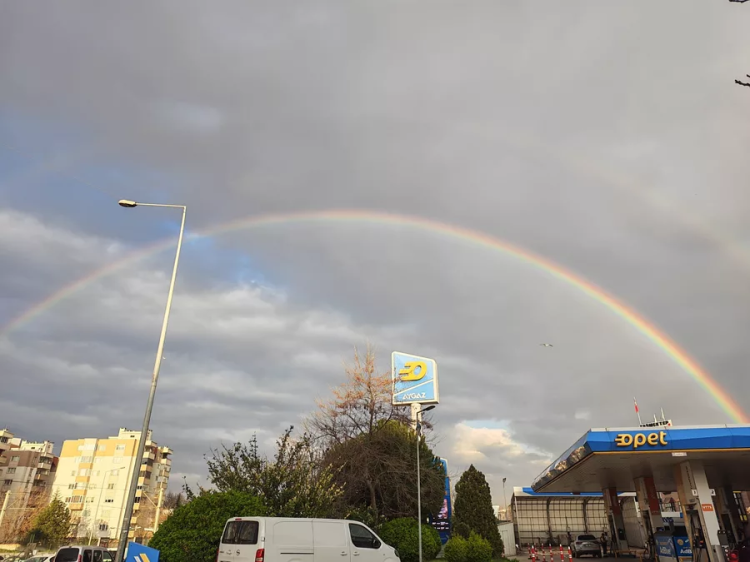 Bursa'da akşam saatlerine doğru başlayan yağmurla birlikte gökyüzünde gökkuşağı oluştu. Aniden ortaya çıkan renkli manzara, güzelliği ile dikkat çekti.
