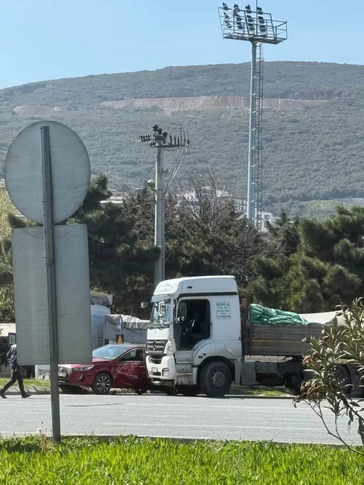 Kazada, tırın çarptığı otomobilde maddi hasar meydana gelirken, içindekiler kısa süreli panik yaşadı.