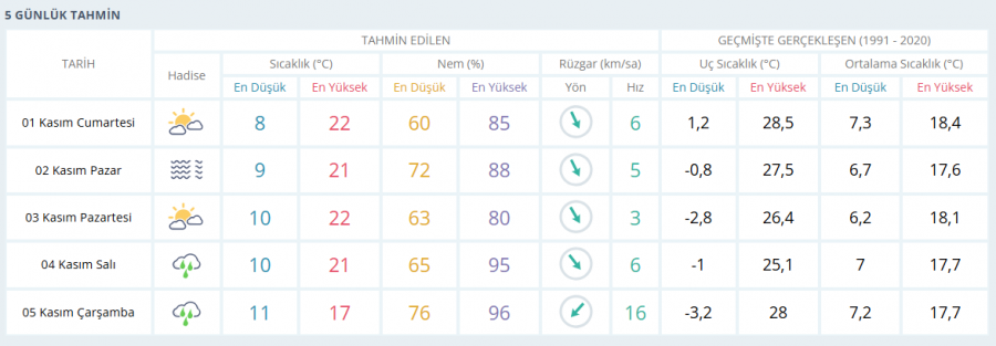 2 Kasım Pazar: Pazar günü Bursa'da özellikle sabah saatlerinde sisli bir hava olacak. Gece sıcaklığının 9 derece olması bekleniyor.