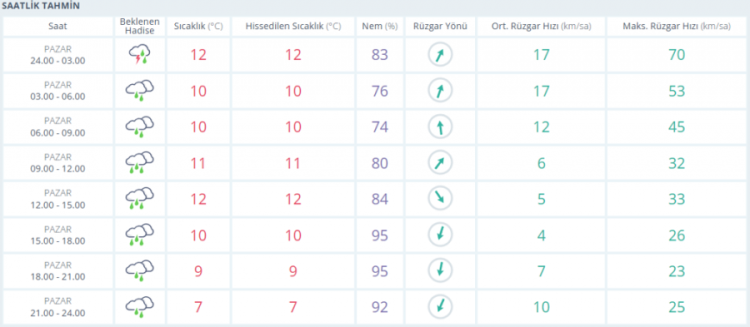 Yağışlı ve rüzgârlı. Sıcaklık 10-12 derece arasında.