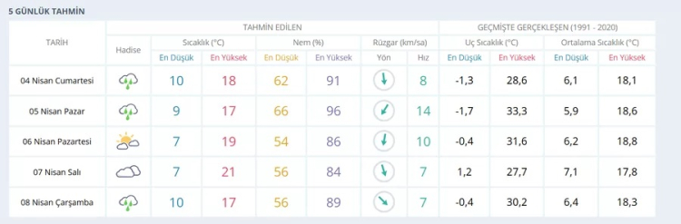 04 Nisan Cumartesi: Haftanın En Serin Günü