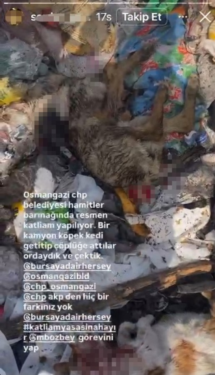 Bursa'da bir vatandaşın ihbarı üzerine Osmangazi Belediyesi'nin Hamitler Hayvan Barınağı'nda öldürülen köpekler, kamyonla taşınarak siyah çöp poşetleri içinde Hamitler çöplüğüne atıldı. Bu olayın daha öncelerde de yaşandığını iddia eden hayvanseverler çöplüğe atılan hayvanların birçoğunun yavru kedi ve köpek olduğunu belirtti. Sosyal medya hesaplarında paylaşılan görüntüler tepki çekerken Osmangazi Belediyesi'nden herhangi bir açıklama yapılmadı.