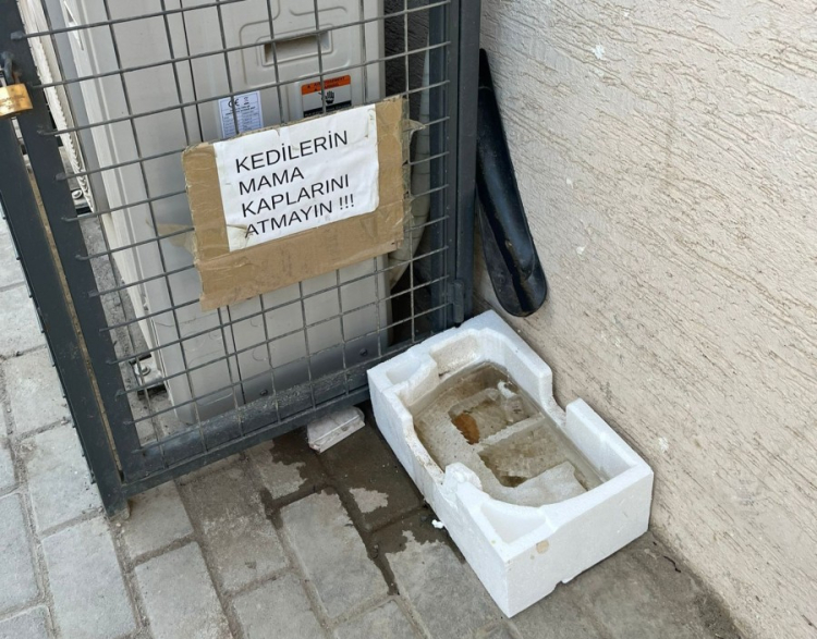 Hayvanseverler tarafından sıcak havalarda sokak hayvanlarının serinlemesi ve karınlarını doyurması için site önüne koyulan kapların çöpe atılmaması için site girişine uyarı yazısı asıldı. Bu davranış, mahalle halkı tarafından örnek davranış olarak yorumlandı.