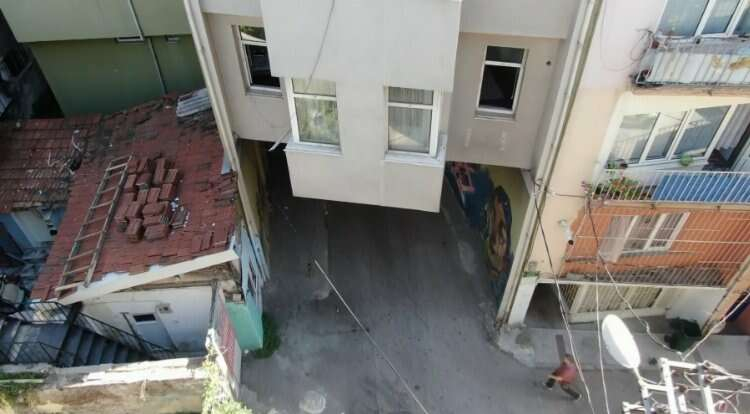 Bursa'da 3 katlı evin temelinden geçen tünel şeklindeki yol görenleri şaşkına çevirirken, o ev drone ile havadan görüntülendi. Gören Bursalılar ise, "Bu görüntüleri Karadeniz'de görmeye alışmıştık. Bursa'da da bulunması hayli ilginç" dediler.