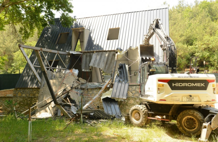Zabıta ekiplerinin güvenlik önlemleri eşliğinde gerçekleştirilen yıkım çalışmasında, bin 900 metrekarelik arazi üzerine kurulu toplam 270 metrekarelik iki kaçak villa ile birlikte alandaki müştemilat da kullanılamaz hale getirildi.
