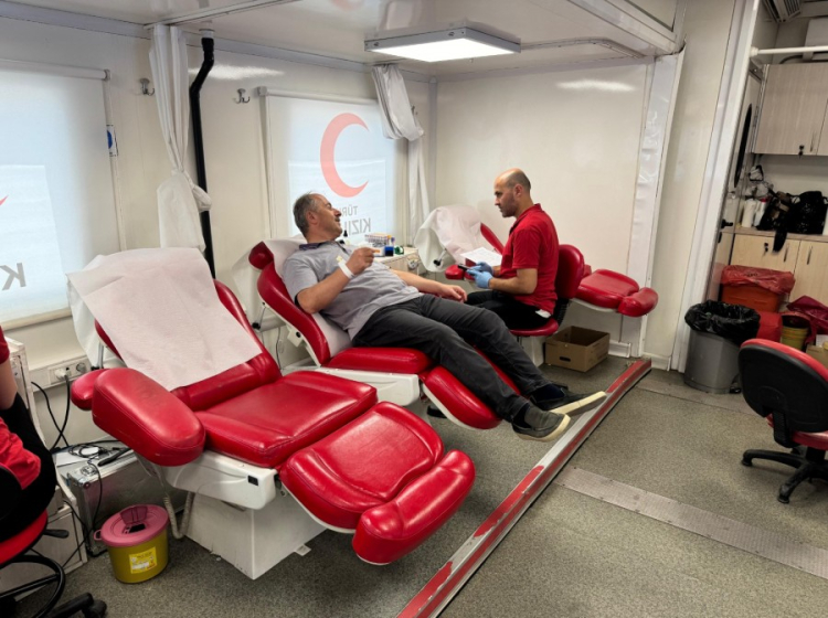 Bursa'nın Orhangazi ilçesinde ilçe Kaymakamı Zafer Karamehmetoğlu ile İlçe Jandarma Komutanı Selim Kurtoğlu, Cumhuriyet alanında bulunan Kızılay kan toplama aracında kan vererek, Kızılay'a destek oldular.