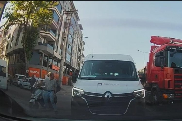 Çarpmanın etkisiyle yere savrulan adam kazadan kıl payı yara almadan kurtulurken, taraflar arasında kısa süreli bir tartışma yaşandı.