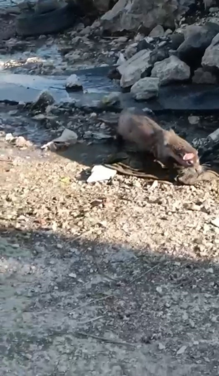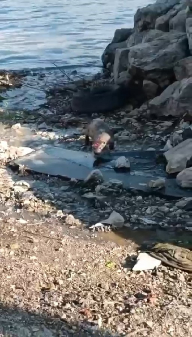 Bu sırada yaralı samuru farkeden çocuklar onu önce fare sandı. Balıkçılar tarafından yakalanan balıklardan aşırıp yemeye başlayınca su samuru olduğu anlaşıldı.