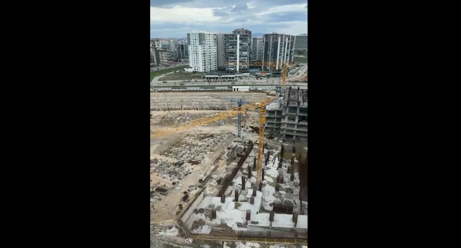 Cep telefonu kamerasıyla kaydedilen görüntülerde, vincin rüzgarın etkisiyle sürekli döndüğü görülürken, özellikle inşaat alanına yakın binalarda yaşayanlar büyük tedirginlik yaşadı.