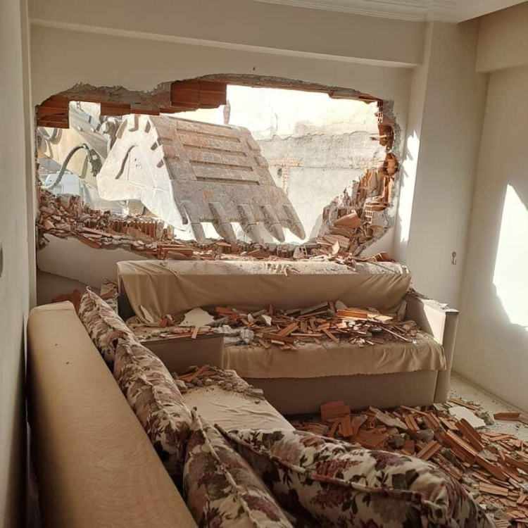 Edinilen bilgilere göre, temel kazısı yapılan inşaat alanında çalışan iş makinesi, bitişikte bulunan binanın duvarına zarar verdi.